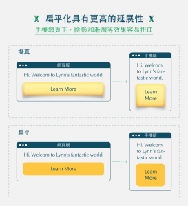 且用手機瀏覽網頁的話,立體造型的按鈕設計會有稍微扭曲